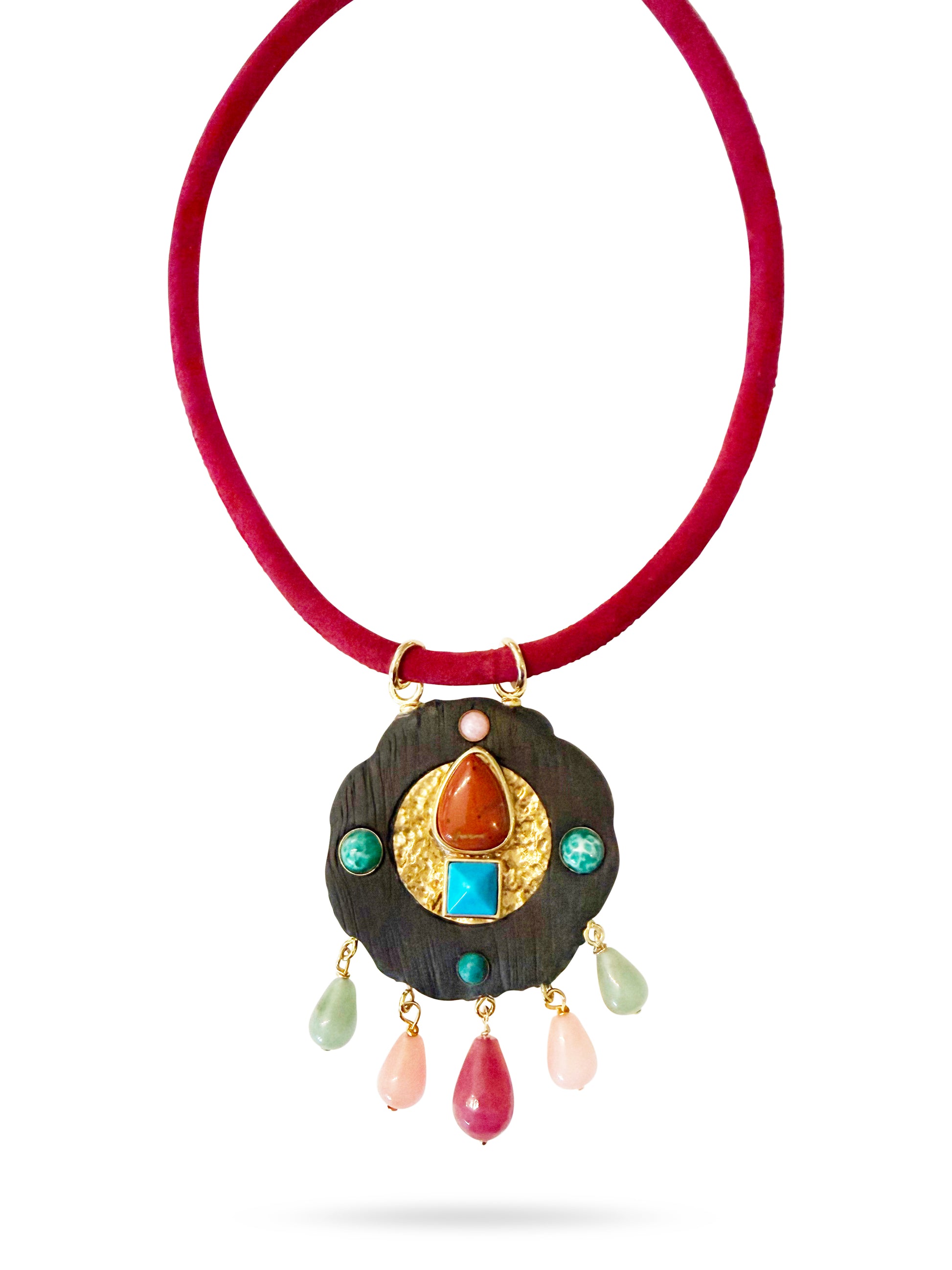 Pendant made with Real Semi-precious gemstones, brass, and polymer clay