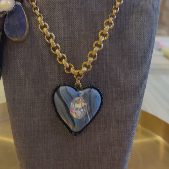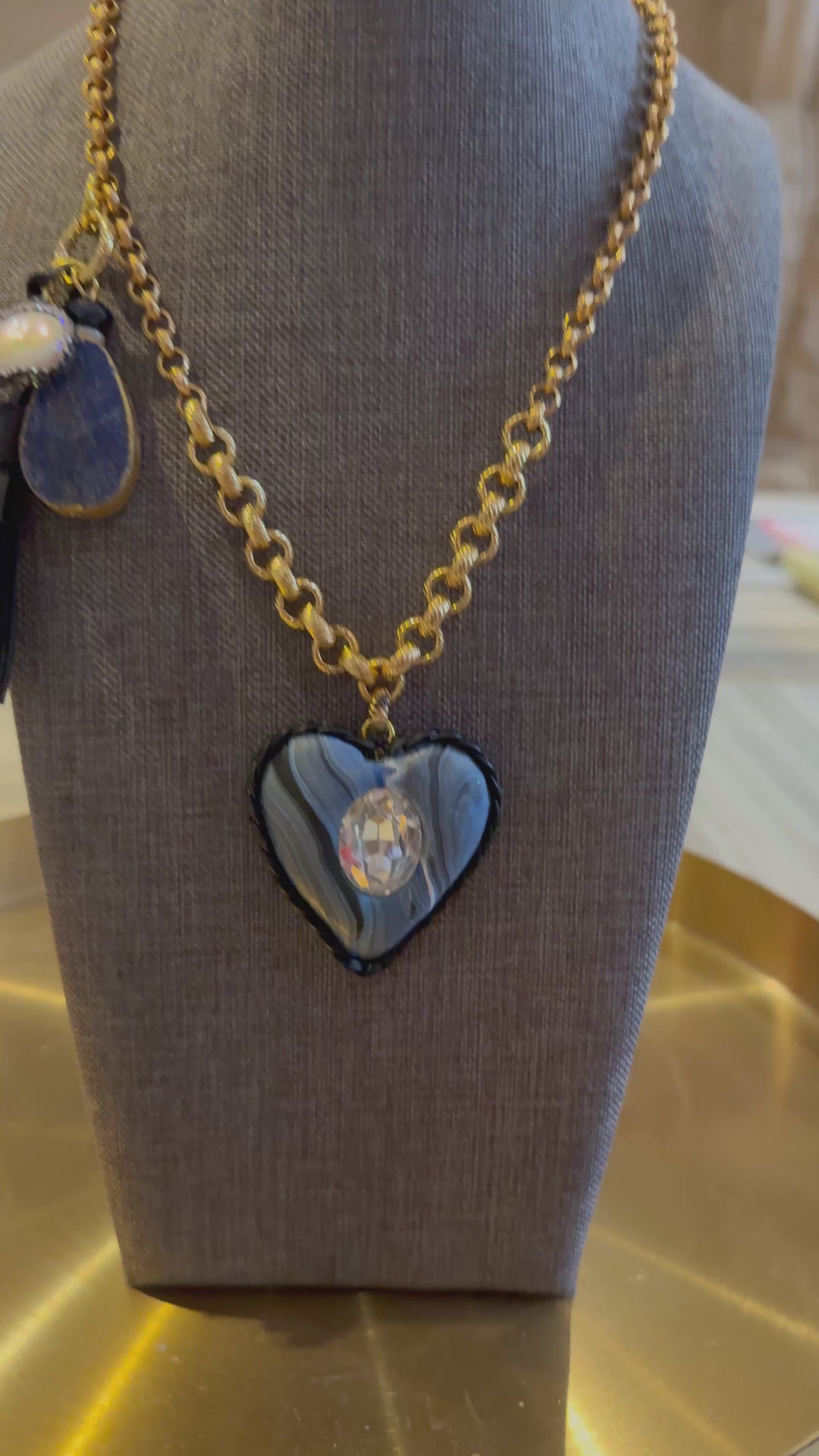 Elevate your everyday style with this captivating Sea Line heart pendant necklace. The striking heart pendant, delicately trimmed in luxurious black suede, serves as the perfect focal point for this thoughtfully curated piece. Adorned with a flowing faux leather tassel, lustrous pearl charm, and carefully selected semiprecious stones, this necklace blends coastal-inspired elegance with timeless sophistication. Whether you're seeking a meaningful gift or a personal treasure, this versatile accessory effortlessly transitions from casual to refined occasions, adding an instant touch of charm and character to any ensemble